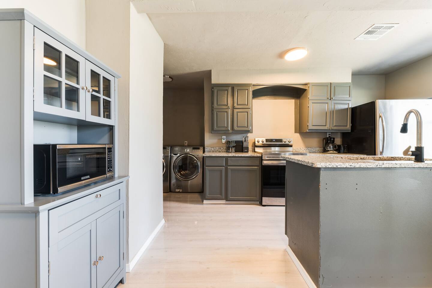 Extra thoughtful amenities for the extended stay professional includes starter kit for laundry, contactless entry, kitchen essentials, designated cabinet and easy parking in front. Every turn is professionally cleaned and regular housekeeping is an option.
