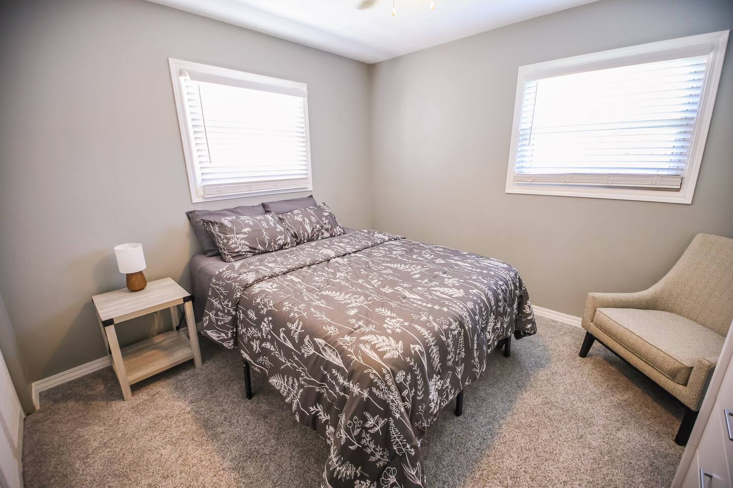 ☀ Queen bed ☀ 1 dresser and 1 closet ☀ Shared hallway full bathroom ☀ Smart TV ☀ Fully equipped kitchen ☀ Full-size washer/dryer ☀ Central location with easy access to restaurants, grocery, and shops ☀ Perfect for travel nurses, student interns, traveling workers, solo stays